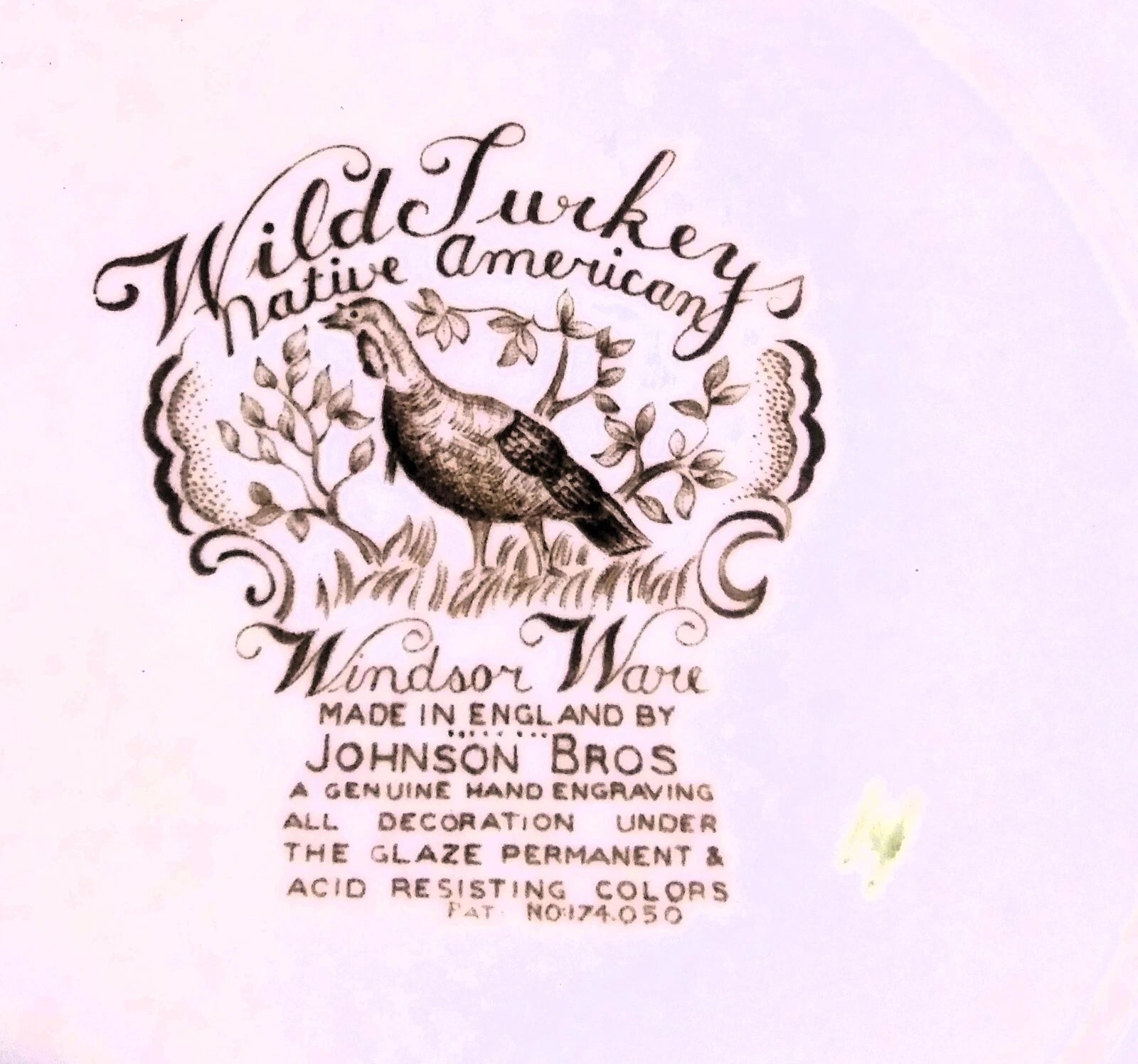 英国製 ジョンソンブラザーズ「ウィンザーウェア」ワイルドターキー柄 ディナープレート。感謝祭モチーフとしても人気の七面鳥が描かれた、味わい深いブラウンカラーのヴィンテージプレートです。1990〜1999年頃の製造で、光沢のある美しい仕上がり。状態は非常に良好で、欠け・ヒビ・貫入はありません。サイズの詳細をご希望の場合はお気軽にお問い合わせください。ビンテージ品の特性をご理解のうえ、ご購入をお願いいたします。